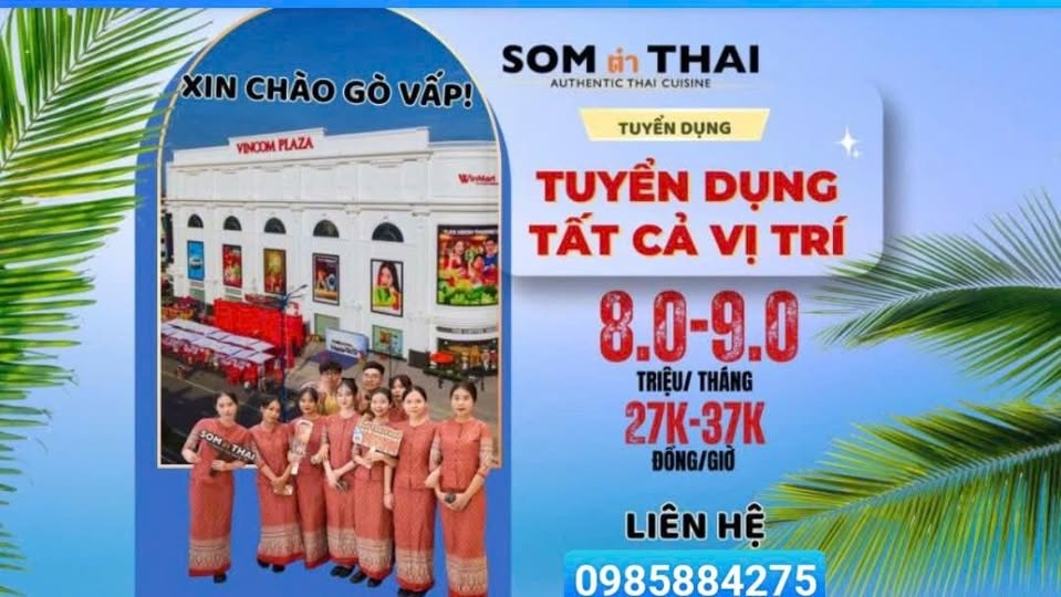 Tuyển Dụng Takahiro SOM ตํา THAI – CHI NHÁNH MỚI GÒ VẤP TUYỂN DỤNG TẤT CẢ VỊ TRÍ VỊ TRÍ Bạn yêu thích ẩm thực Thái? Muốn làm việc trong môi trường trẻ trung, năng động, đồng nghiệp thân thiện? Hãy gia nhập team Som ตำ Thai ngay hôm nay! Các vị trí tuyển dụng:…