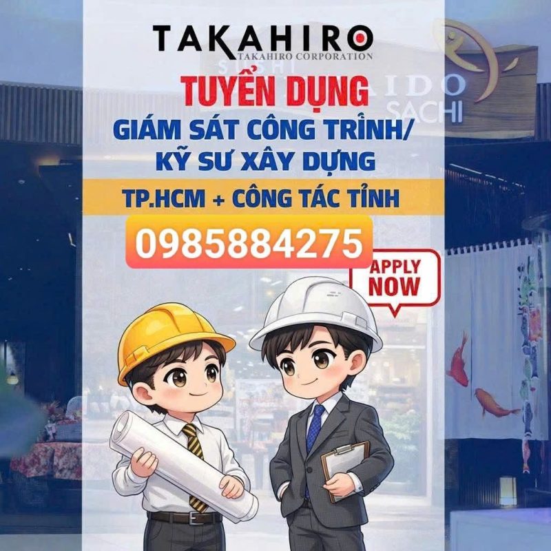 TAKAHIRO TUYỂN DỤNG- GIÁM SÁT CÔNG TRÌNH / KỸ SƯ XÂY DỰNG.Takahiro đang không ngừng mở rộng hệ thống và triển khai nhiều dự án mới, vì vậy chúng tôi tìm kiếm Giám sát Công trình / Kỹ sư Xây dựng đồng hành cùng đội ngũ. MÔ TẢ CÔNG VIỆC– Quản lý, kiểm tra và theo…